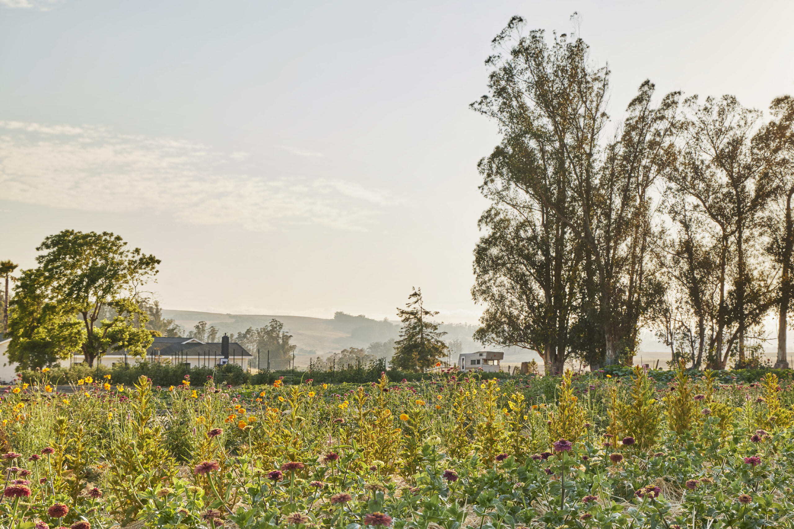 Walk our property and you’ll encounter the cool, camphorous breath of our eucalyptus tree walk. A fresh morning wind catching the tall, awakened blue-eyed grass. The subtle balsam amber rising off the seaside daisies. In our planted beds, we invite many aromatic herbs and flowers to sway alongside our cannabis – lemon verbena, dark opal, Thai and holy basil, lavender, thyme, calendula, marigold, zinnias, asters, and more…